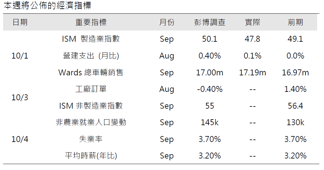 壞消息可能還會浮現!因為接下來的3日和4日,美國將陸續公告ISM 9月非製造業指數,以及失業率和平均時薪(如下圖二),市場仍在屏息以待。此外,10日開始,中美雙方將進行新一輪的貿易談判,而英國首相強生近期也發布新的脫歐計畫,準備向歐盟提出10天的協商期,倘若談不攏,將在10月底直接無協議脫歐。